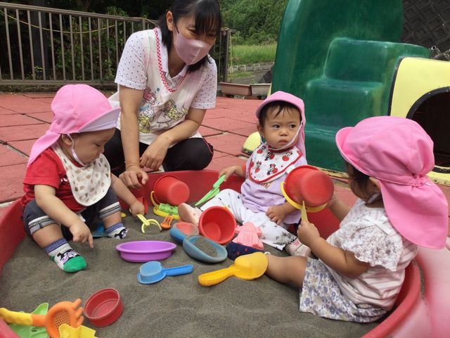 砂遊びをしたよ、楽しいね