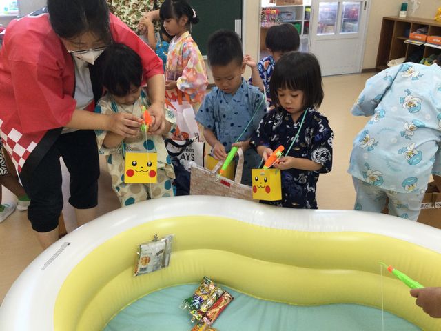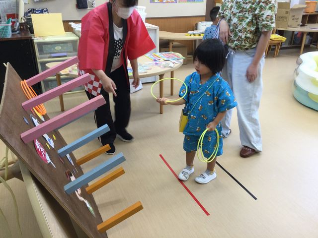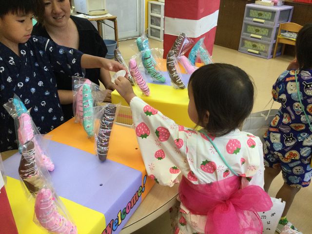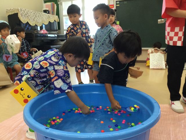 「縁日あそび。いろいろなお店をまわって、お買い物やゲームを楽しみました!!」