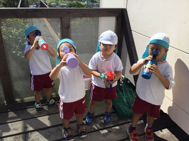 「水筒で水分補給。」