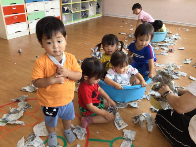 新聞紙プール楽しいな