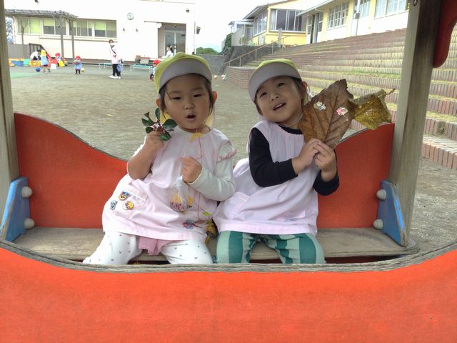 葉っぱや木の実とハイチーズ☆